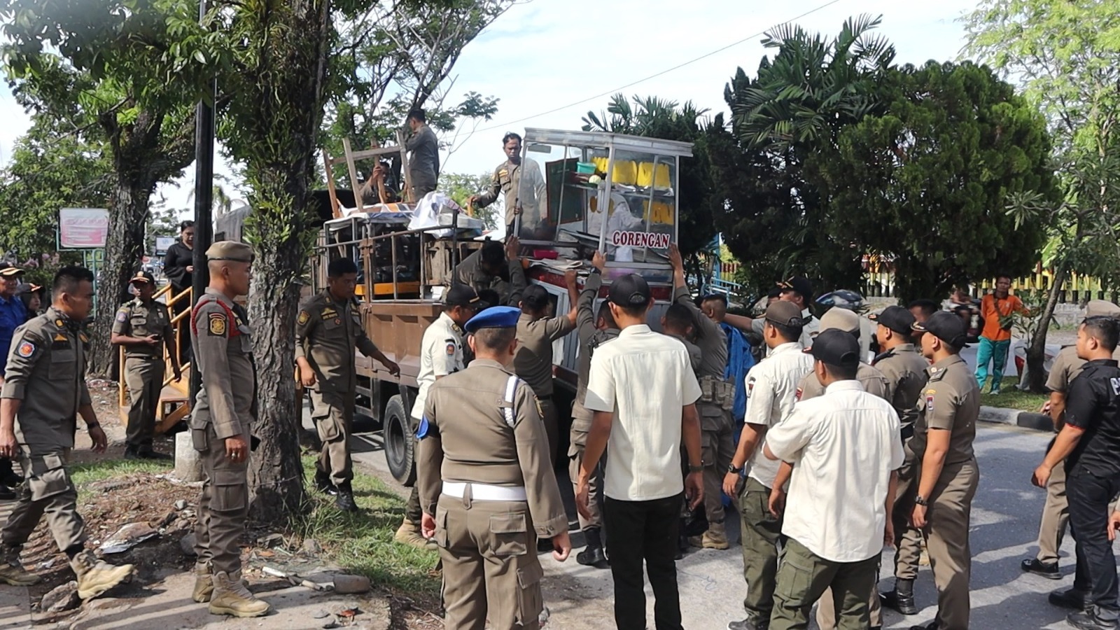 Sorotan.id – Satuan Polisi Pamong Praja (Satpol PP) Padang melakukan penertiban di kawasan Jalan Adinegoro Tabing, Kecamatan Koto Tangah, Kota Padang, Kamis (10/7/25).