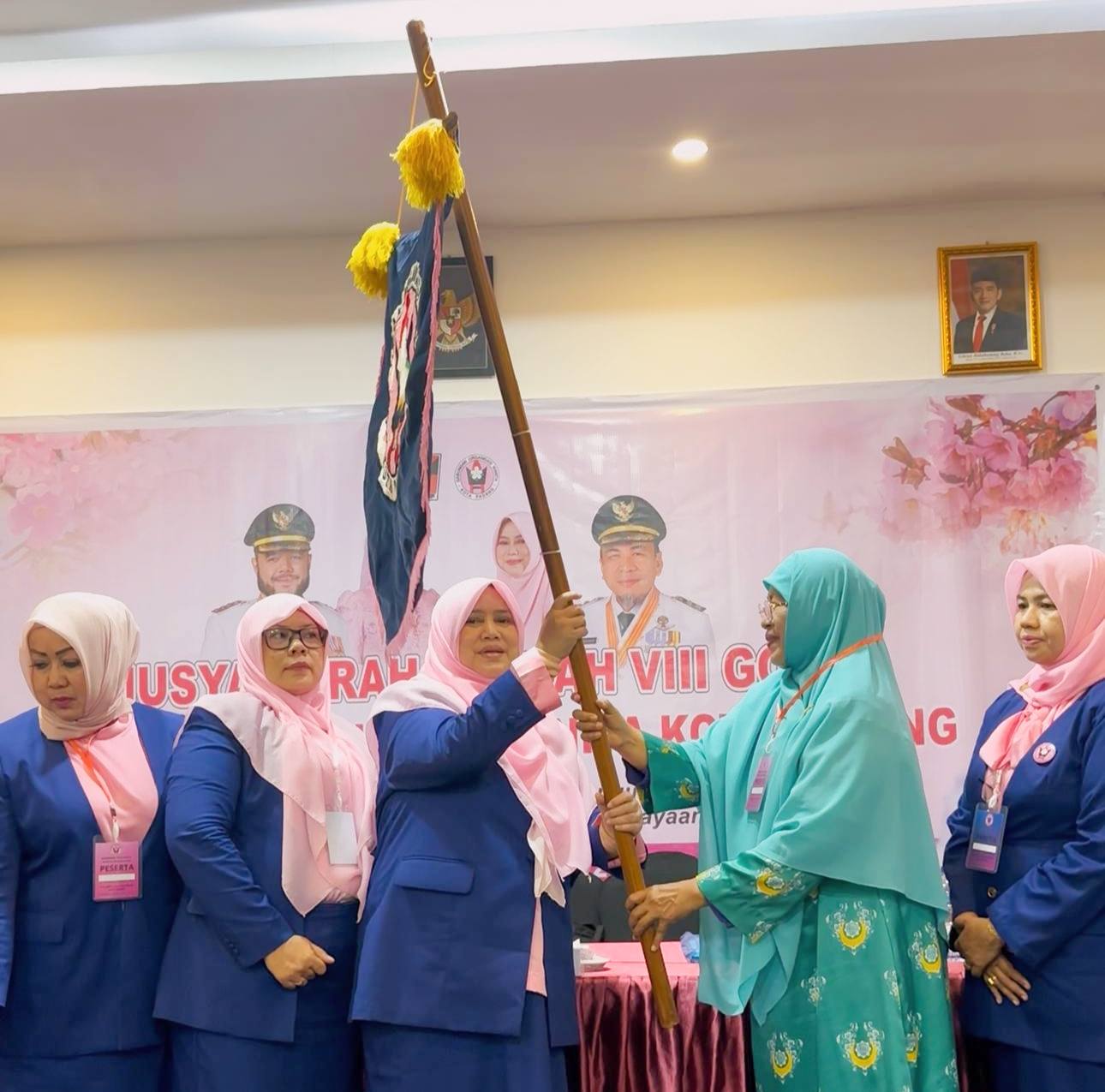 Setelah terpilih secara aklamasi, Ny Srihayati Maigus Nasir kemudian mengibarkan bendera pataka GOW di depan seluruh pengurus. Seluruh pengurus akan dilantik dalam waktu dekat.(Charlie)