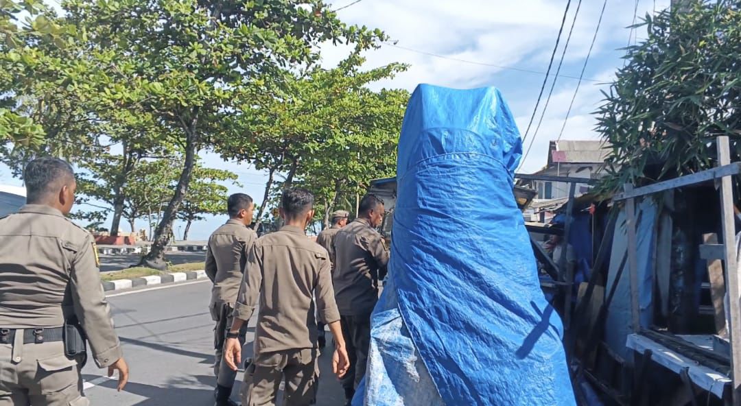 Sorotan.id – Satuan Polisi Pamong Praja (Satpol PP) Kota Padang menertibkan sejumlah lapak yang ditinggalkan pemiliknya di kawasan Jalan Samudra, Pantai Padang, Senin (13/10/2025) pagi.