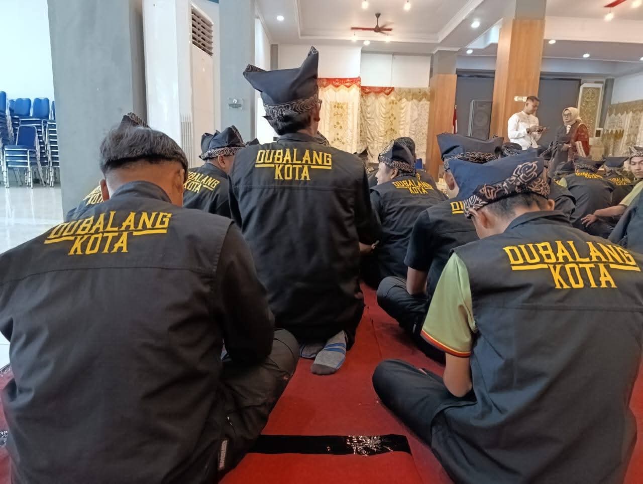Seluruh Dubalang Kota dikukuhkan di Gedung Youth Center, Kamis (30/10/2025). Selain dikukuhkan, mereka juga dibekali kendaraan operasional.