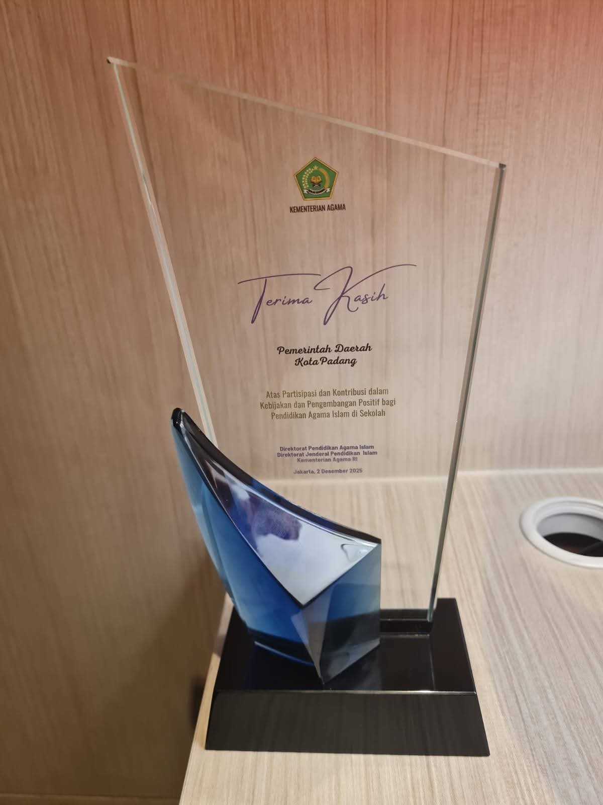 Penghargaan diserahkan langsung Direktur PAI, Kementerian Agama RI, Dr. H. Muhammad Munir, S.Ag, MA. Penghargaan ini sebagai bukti bahwa Kota Padang mampu dan berhasil menghadirkan ekosistem kolaboratif antara pemerintah daerah, guru PAI, Kementerian Agama, serta masyarakat.