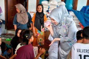 Tidak hanya menyerahkan bantuan, Dian Puspita juga mengecek kesiapan dapur umum yang dikelola ibu-ibu di posko. Ia menanyakan langsung apakah stok bahan masakan masih cukup. Para ibu yang bertugas memastikan bahwa bahan memasak masih tersedia untuk beberapa hari ke depan.