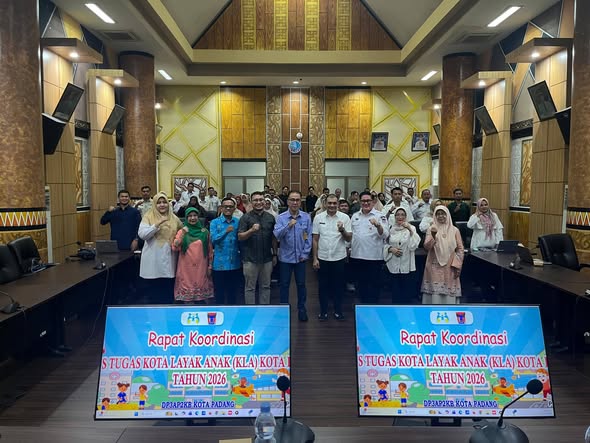 Sorotan.id – Pemerintah Kota Padang menggelar Rapat Koordinasi Gugus Tugas Kota Layak Anak (KLA) 2026 di Ruang Abu Bakar Jaar, Balai Kota Padang, Rabu (15/4/2026). Rakor ini bertujuan memperkuat komitmen bersama dalam rangka optimalisasi nilai KLA 2026.